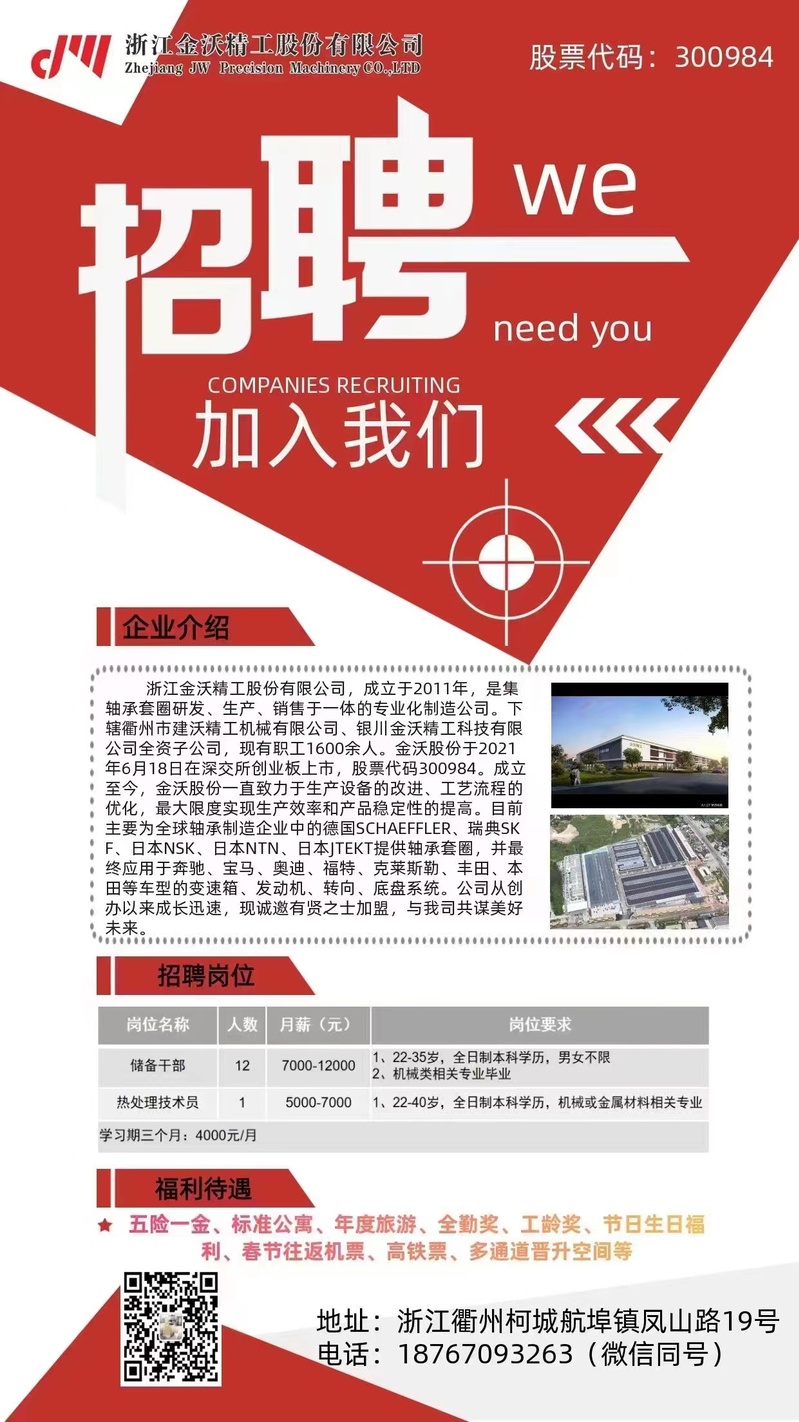 浙江金沃精工股份有限公司招聘信息